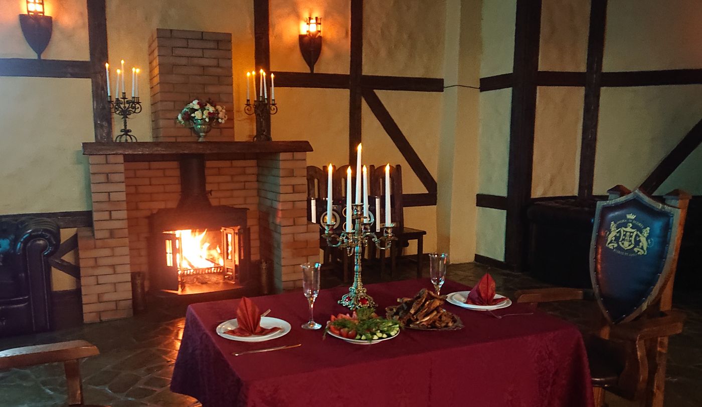 Можно заказать ужин , оформление стола в Рыцарском зале и оформление комнаты.